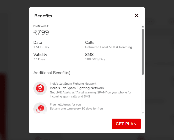एयरटेल का 799 रुपये वाला प्लान | Airtel Rs 799 Plan