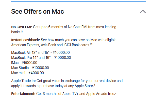 डिसक्लेमर: यहां दिए गए डिस्काउंट और कैशबैक की जानकारी एप्पल के ऑफिशियल साइट के अनुसार दी गई है. ऐसे में खरीदने से पहले ऑफर और डिस्काउंट अच्छे से चेक कर लें.