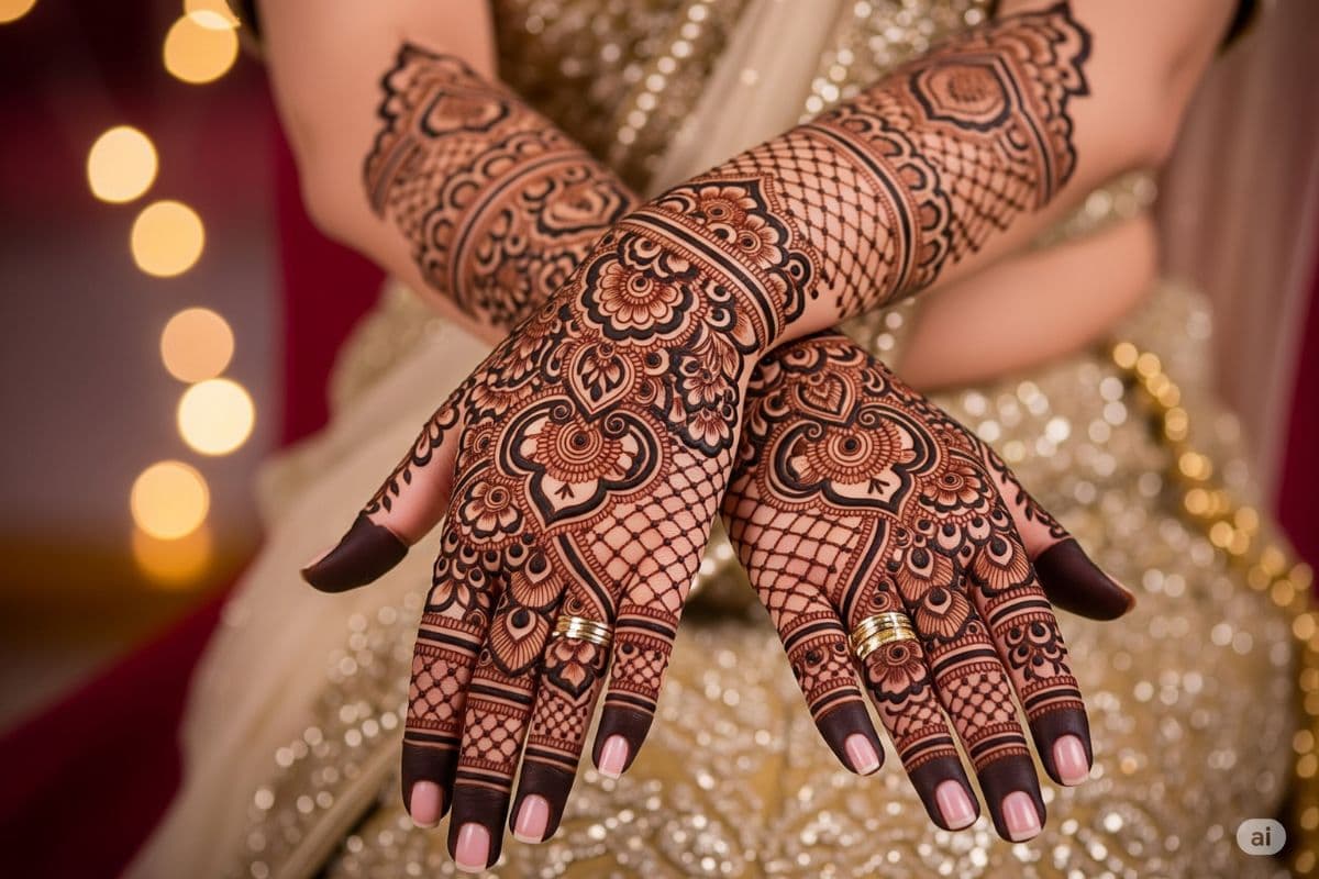 अगर इस तीज पर आप बाकी सबसे हटकर और स्टाइलिश दिखना चाहती हैं, तो हाथों में कुछ ट्रेंडिंग और खास मेहंदी डिजाइन ट्राई कर सकती हैं. यहां हम आपके लिए लाए हैं कुछ लेटेस्ट और बेस्ट AI से बने मेहंदी डिजाइन्स, जो आपके तीज के लुक को बना देंगे सबसे यूनिक और स्पेशल. आइए एक नजर डालते हैं इन डिजाइन्स पर…