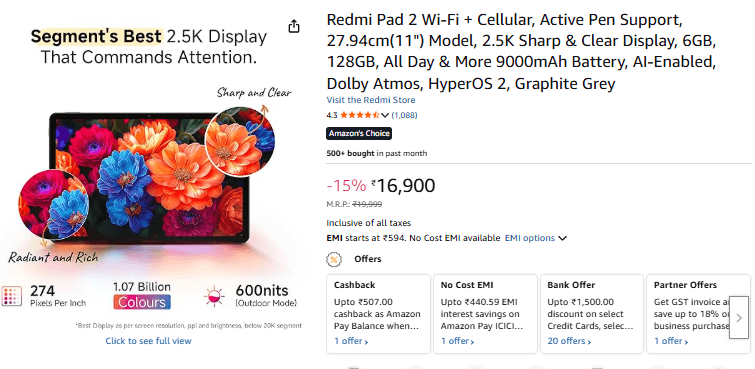 Redmi Pad 2 अपनी 2.5K डिस्प्ले और 90Hz रिफ्रेश रेट के साथ स्मूद गेमिंग एक्सपीरियंस देता है. 9000mAh की बड़ी बैटरी लंबे समय तक गेम खेलने में मदद करती है. अच्छी साउंड क्वालिटी गेम्स को और मजेदार बनाती है. बजट में कैजुअल गेमिंग करने वालों के लिए यह एक बढ़िया टैबलेट है.