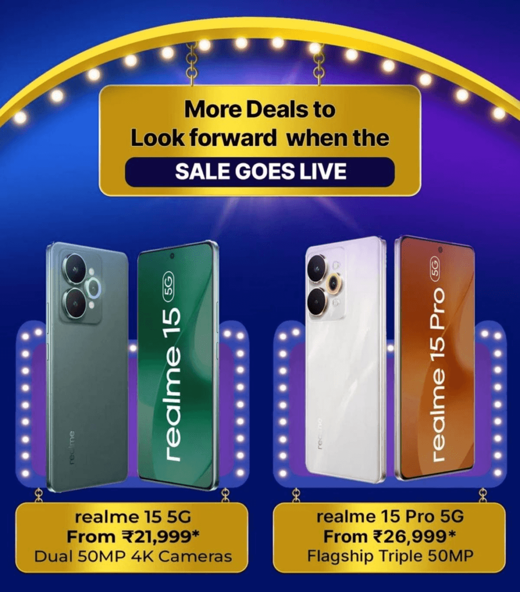 हाल ही में लॉन्च हुआ Realme 15 Series भी आपके लिए एक अच्छा ऑप्शन हो सकता है. फ्लिपकार्ट सेल में Realme 15 और Realme 15 Pro पर अच्छा-खासा डिस्काउंट मिलेगा. इस सेल में Realme 15 की कीमत 21,999 रुपये और Realme 15 Pro की कीमत 26,999 रुपये से शुरू होगी. Realme 15 में 7000mAh बैटरी, MediaTek Dimensity 7300+, 50MP+8MP का डुअल रियर कैमरा, 50MP का फ्रंट कैमरा और Curved डिस्प्ले मिलेगा.