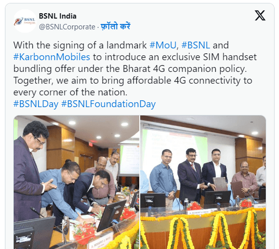 BSNL 4G Mobile: BSNL ने Karbonn Mobiles के साथ हाथ मिलाया