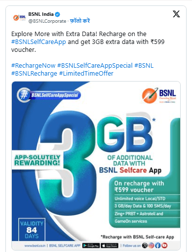 बीएसएनएल का यह ऑफर केवल BSNL के सेल्फ केयर ऐप के माध्यम से उपलब्ध है, जिससे यूजर्स अपने नंबर को रीचार्ज कर सकते हैं. इसके अलावा, इस सस्ते प्लान में Zing, PRBT, Astrotell और GameOnService जैसी वैल्यू ऐडेड सर्विसेज का भी लाभ मिलेगा.