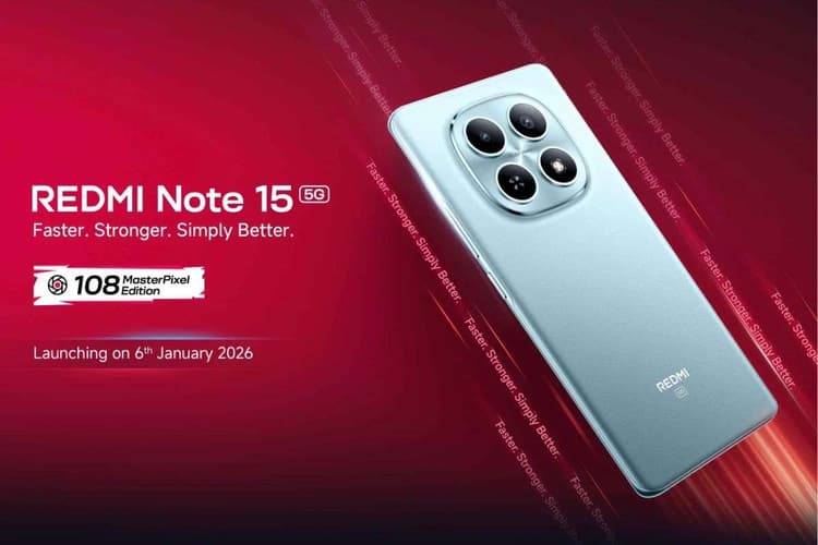 Redmi Note 15 5G को कंपनी भारत में 6 जनवरी 2026 को लॉन्च करने वाली है. इस मॉडल के टीजर पोस्टर पर कंपनी ने फास्टर, स्ट्रॉन्गर और सिंपली बेटर का टैग लाइन दिया है. शाओमी अपना नया मॉडल Redmi Note 15 अपने ऑफिशियल साइट के अलावा ई-कॉमर्स शॉपिंग साइट Amazon पर लॉन्च करने वाला है, जहां इस मॉडल की एक माइक्रोसाइट पेज लाइव कर दी गई है.
