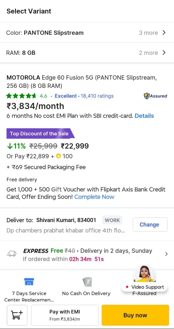 Edge 60 Fusion के 8GB+256GB वाले वेरिएंट पर ई-कॉमर्स शॉपिंग साइट फ्लिपकार्ट (Flipkart) 11% तक का डिस्काउंट ऑफर कर रही है. जिससे 25,999 रुपये वाले इस फोन की कीमत घटकर 22,999 रुपये हो गई है. यानी कि सीधे 3 हजार रुपये का डिस्काउंट. साथ ही अगर आप Axis Bank के क्रेडिट कार्ड से पेमेंट करते हैं तो फिर आपको 2000 रुपये का इंस्टेंट बैंक डिस्काउंट मिलेगा. जिससे आप Edge 60 Fusion सिर्फ 20 हजार रुपये में खरीद सकते हैं. लेकिन इन सबके अलावा फ्लिपकार्ट इस मॉडल पर 21,150 रुपये का एक्सचेंज ऑफर भी दे रही है. यानी कि अगर आपके पास Motorola का पुराना मॉडल है तो आप उसे एक्सचेंज कर Edge 60 Fusion को सिर्फ 1849 रुपये में खरीद सकते हैं. लेकिन ध्यान रहे पुराने मॉडल की कंडीशन अच्छी होनी चाहिए.
