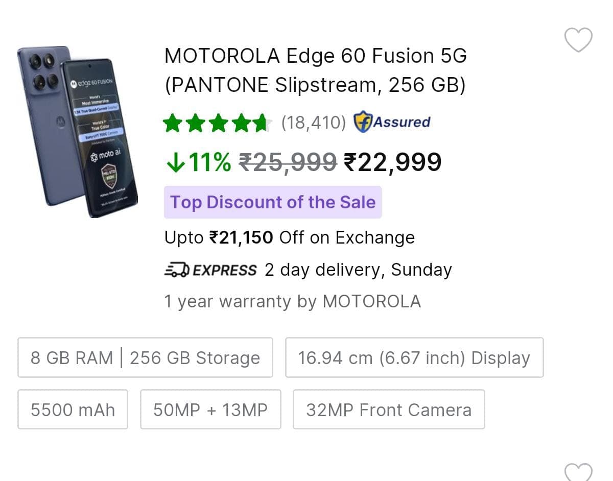 1849 रुपये में मिल रहा Motorola Edge 60 Fusion, Flipkart पर गजब का एक्सचेंज ऑफर