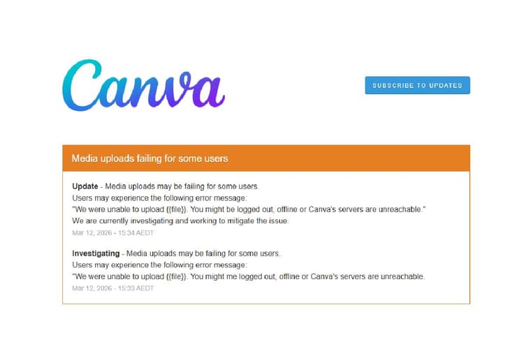 पॉपुलर क्रिएटिव डिजाइन प्लेटफॉर्म Canva डाउन हो गया है. Canva ओपन करते ही मीडिया अपलोड फेल का नोटिफिकेशन दिखाई दे रहा है, जिसकी वजह से करोड़ों यूजर्स परेशान हैं. कई यूजर्स ने आउटेज ट्रैकिंग वेबसाइट DownDetector पर शिकायत की है, कि वे प्लेटफॉर्म पर नई डिजाइन नहीं बना पा रहे हैं और फाइल अपलोड करने में भी दिक्कत हो रही है. Downdetector के अनुसार बड़ी संख्या में लोगों ने लोडिंग एरर और फेल्ड अपलोड जैसी समस्याओं की रिपोर्ट की है.