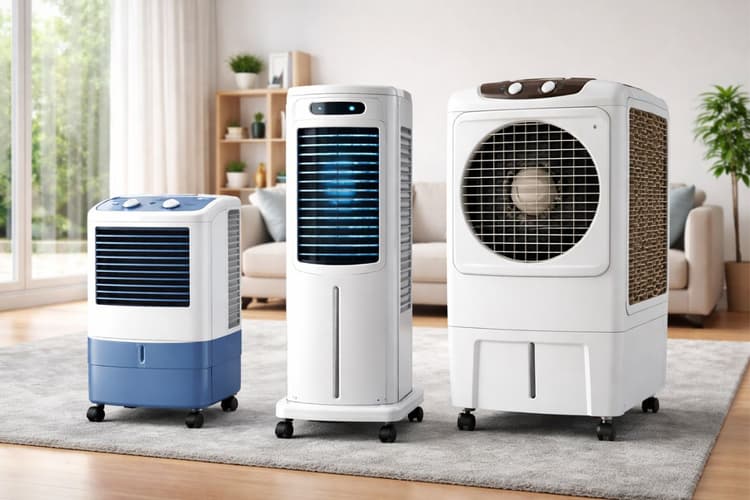 रूम कूलर तीन तरह के होते हैं. पर्सनल कूलर छोटे कमरे या पर्सनल यूज के लिए सही होते हैं और कम बिजली खर्च करते हैं. टावर कूलर स्लिम डिजाइन के होते हैं और मिड साइज के कमरों के लिए बेहतर होते हैं. डेजर्ट कूलर बड़े कमरों और सूखे इलाकों के लिए बनाए जाते हैं, जिनमें बड़ी टैंक कैपेसिटी और पावरफुल फैन होता है.