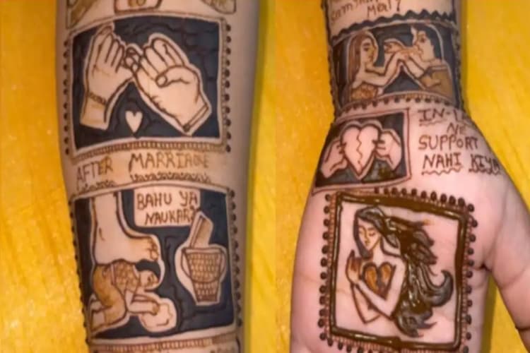 Divorce Mehndi Design: हिंदू धर्म में शादी को पवित्र बंधन माना जाता है. लेकिन समाज में हो रहे बदलावों की वजह से यह बंधन कई बार टूट जाता है. इस बीच एक महिला ने अपनी टूटी शादी की कहानी मेहंदी के जरिये बयां की है. इसमें शादी के बाद उसे नौकरानी समझे जाने, ससुरालवालों का साथ न मिलने और पराये घर को अपना घर समझने की गलती करने का जिक्र है. इस मेहंदी में अंत में लिखा है, आखिरकार तलाक हो गया. यह वीडियो मेहंदी आर्टिस्ट उर्वशी वोरा शर्मा ने इंस्टाग्राम पर शेयर किया है, जो तलाक और वैवाहिक समस्याओं पर समाज का ध्यान आकर्षित करता है. वीडियोज देख आप भी सोच में पड़ जाएंगे.