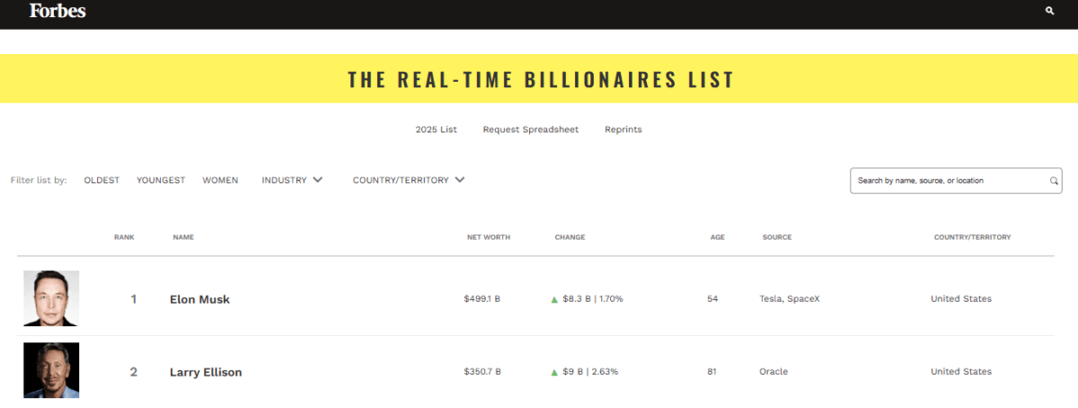 Elon Musk Net Worth: Forbes के Real-Time Billionaires Tracker list 2025 में एक बार फिर एलन मस्क टॉप पर आ गए हैं. एलन मस्क 500 अरब डॉलर नेटवर्थ हासिल करने वाले इतिहास के पहले व्यक्ति बन गए हैं.