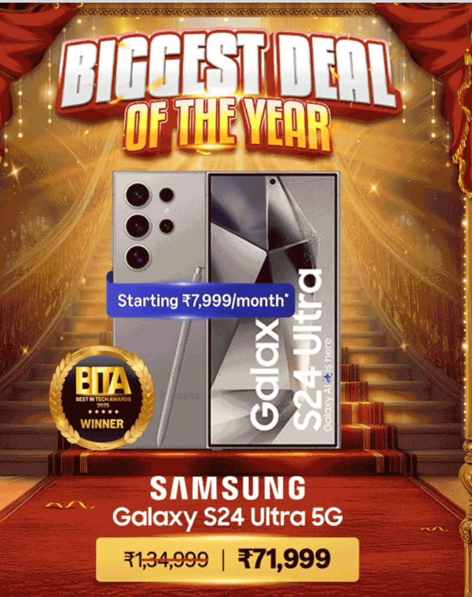 आईफोन के अलावा Samsung Galaxy S24 Ultra की कीमत भी लगभग आधा हो गई है. अमेजन पर यह मॉडल 71,999 रुपये की शुरुआती कीमत पर लिस्टेड है. वहीं, फ्लिपकार्ट पर Samsung Galaxy S24 39,999 रुपये की शुरुआती कीमत में लिस्टेड है.
