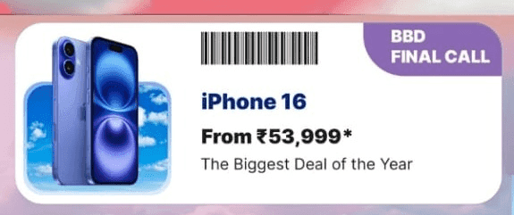 अगर आप iPhone 16 खरीदना चाहते हैं, तो Flipkart BBD सेल में आपके काफी पैसे बचने वाले हैं. क्योंकि, इस सेल में iPhone 16 पर 19% तक का डिस्काउंट दिया जा रहा है. जिससे आप बैंक डिस्काउंट के साथ 69,999 रुपये की जगह 53,999 की शुरुआती कीमत में iPhone 16 खरीद सकते हैं.