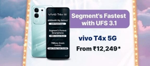15 हजार के अंदर में Vivo T4X 5G भी अच्छा ऑप्शन है. इस मॉडल के बेस वेरिएंट 6GB+128GB पर 25% तक का डिस्काउंट मिल रहा है. जिससे आप इस मॉडल को 17,999 रुपये की जगह बैंक डिस्काउंट के साथ 12,249 रुपये में खरीद सकते हैं.