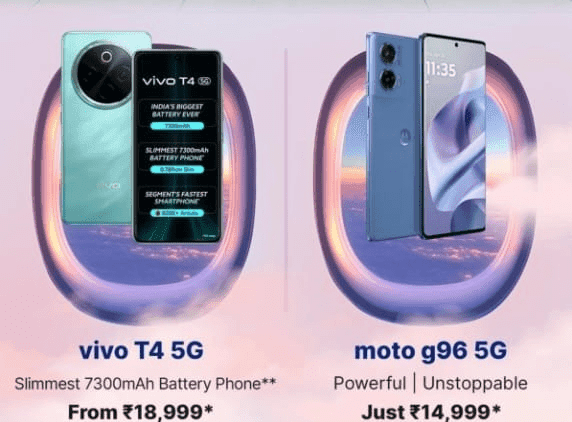वहीं, बड़ी बैटरी के लिए Vivo T4 5G भी अच्छा ऑप्शन है. इस मॉडल के बेस वेरिएंट 8GB+128GB पर 19% तक का डिस्काउंट मिल रहा है. जिससे आप 25,999 रुपये के फोन को बैंक डिस्काउंट के साथ 18,999 रुपये में खरीद सकते हैं. इसमें 7000mAh बैटरी दी गई है.