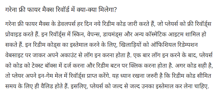 Garena Free Fire MAX Redeem Codes: फ्री फायर मैक्स (Free Fire MAX) में रिडीम कोड का उपयोग करके खिलाड़ी मुफ्त में इनाम प्राप्त कर सकते हैं. ये रिडीम कोड डेवलपर्स द्वारा जारी किये जाते हैं और इन्हें अक्सर सोशल मीडिया और लाइव स्ट्रीमिंग के माध्यम से साझा किया जाता है. इस लेख में, हम 27 अक्टूबर 2024 के रिडीम कोड पर चर्चा करेंगे और जानेंगे कि इन्हें कैसे इस्तेमाल किया जा सकता है. याद रखें कि रिडीम कोड का इस्तेमाल सीमित समय के लिए होता है, इसलिए जल्दी करें!
