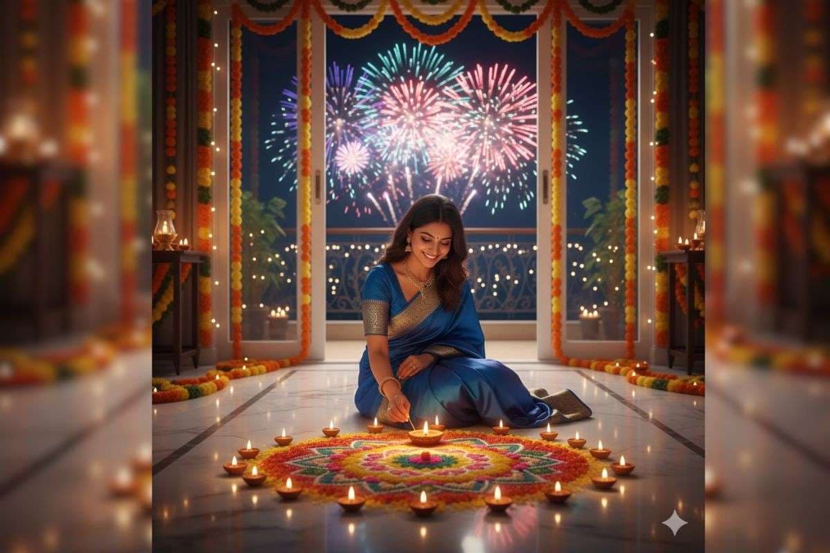 Gemini AI Diwali Picture Prompts: आज पूरे भारत में दिवाली का त्योहार मनाया जा रहा है. शाम में लक्ष्मी-गणेश की पूजा के बाद सभी दीयों से अपने घर को रोशन करेंगे, बच्चे आतिशबाजी करेंगे और अपनों के साथ खुशियां बाटेंगे. त्योहार के इस खुशनुमा पल को सभी अपने कैमरे में भी कैद करेंगे और कई सोशल मीडिया पर इसे शेयर भी करेंगे. हालांकि, सोशल मीडिया पर तो अभी कुछ और ही चल रहा है. सोशल मीडिया यूजर्स Gemini के Nano Banana फीचर से अपनी इमेज को दिवाली इमेज में बदलकर सोशल मीडिया पर शेयर कर रहे हैं. कोई रंगोली बनाते हुए अपनी इमेज शेयर कर रहा है तो दीयों के संग. ऐसे में अगर आप भी अपनी इस तरह की इमेज बनाना चाहते हैं, लेकिन आप को इसके Prompt समझ नहीं आ रहे हैं, तो फिर टेंशन नॉट. हम लेकर आए हैं आपके लिए कुछ खास प्रॉम्प्ट जिससे आप भी इस तरह के ट्रेंड को फॉलो कर सकते हैं.