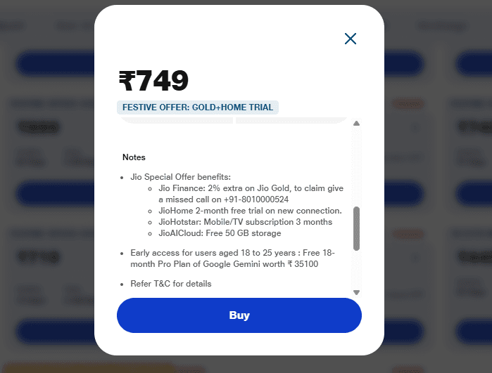 Jio के 72 दिनों वाले प्लान की कीमत 749 रुपये है. डेली के खर्च के हिसाब से देखा जाए तो हर रोज करीब 10 रुपये का खर्च पड़ेगा. यानी की 750 रुपये से कम में यूजर्स अनलिमिटेड डेटा से लेकर अनलिमिटेड कॉलिंग और मैसेजिंग के अलावा एंटरटेनमेंट और फ्री AI जैसे बेनिफिट्स का फायदा उठा सकते हैं.