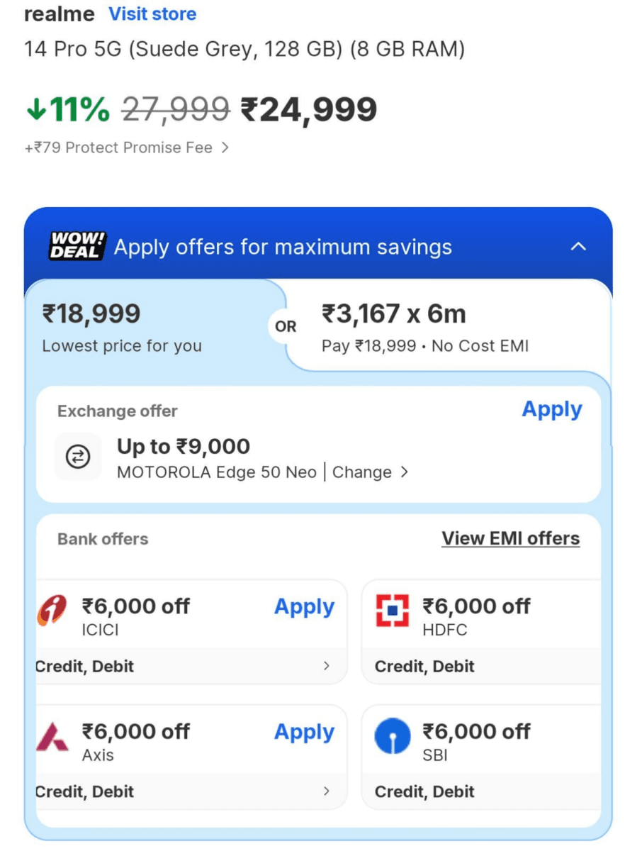 Realme 14 Pro पर कितना मिल रहा बैंक डिस्काउंट?