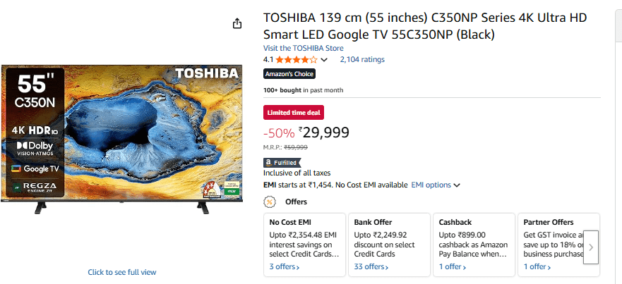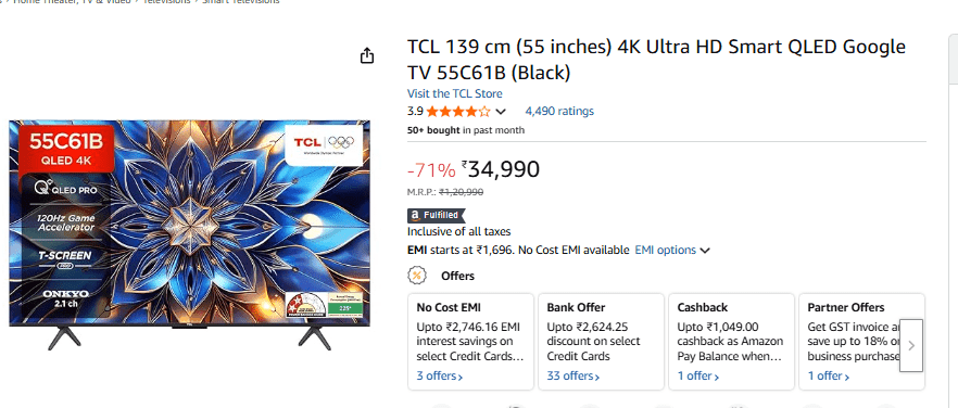 55 इंच स्मार्ट टीवी पर अमेजन कितने तक का डिस्काउंट दे रहा?