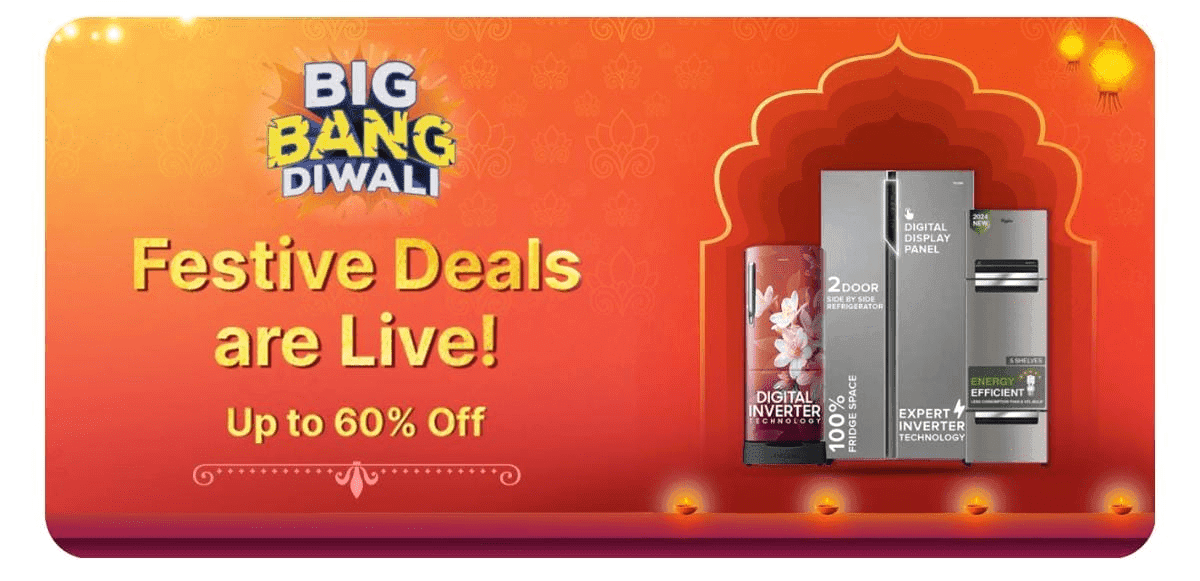 Flipkart Diwali Sale में फ्रिज पर 60% तक का डिस्काउंट मिल रहा है.