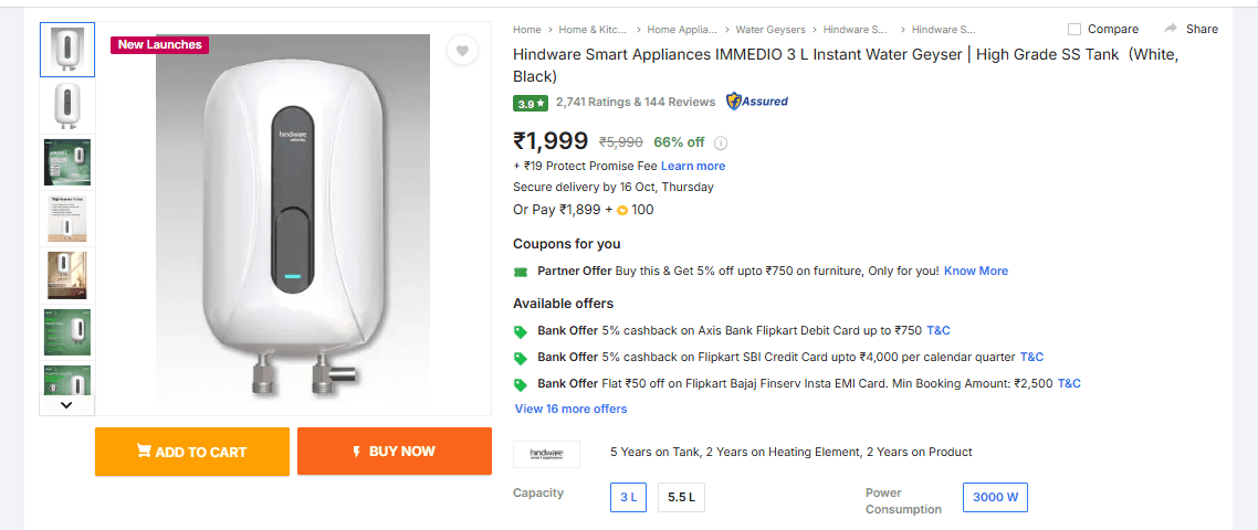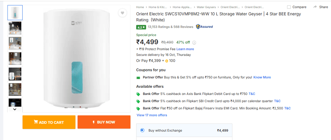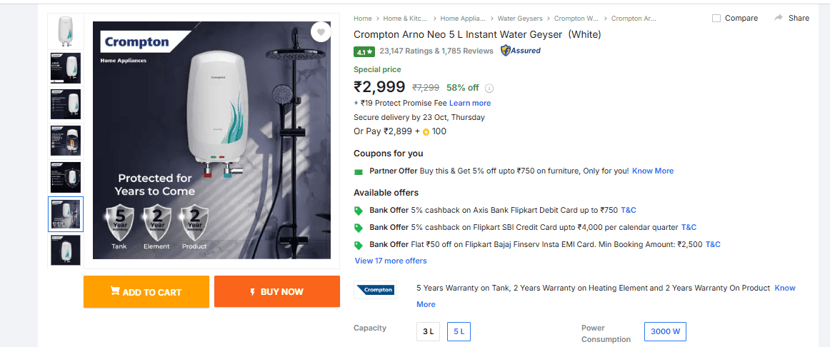 फ्लिपकार्ट दिवाली सेल में गीजर ऑफर/एआई