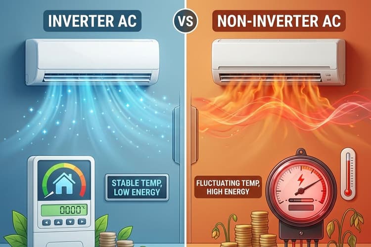 फरवरी का महीना अभी खत्म भी नहीं हुआ और गर्मियों की शुरुआत होने लगी है. ऐसे में अगर आप भी आने वाली गर्मी से बचने के लिए एसी खरीदने का प्लान बना रहे हैं, तो कुछ बातें जानना बेहद जरूरी हैं. एसी खरीदते समय यह समझना जरूरी है कि यह कितनी बिजली खपत करता है, उतना ही जरूरी जितना कि यह कमरा कितनी अच्छी तरह ठंडा करेगा. यही वजह है कि इन्वर्टर और नॉन-इन्वर्टर एसी की बहस अक्सर सामने आती है. तो आइए जानते हैं कि रोजमर्रा के इस्तेमाल में ये दोनों एसी कैसे काम करते हैं, इसका आपके बिजली बिल पर क्या असर पड़ता है और आपके घर के लिए कौन सा ऑप्शन बेहतर रहेगा.