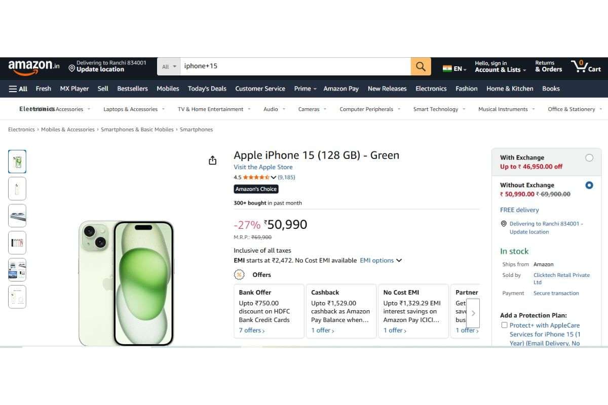 Amazon पर iPhone 15 मिल रहा सस्ता
