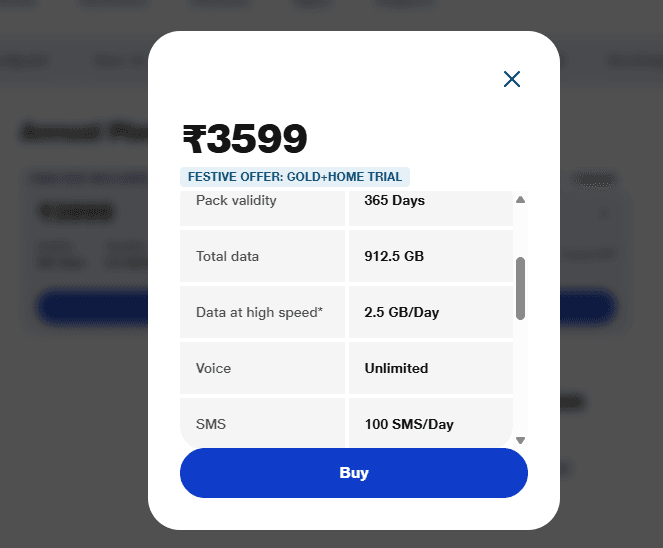 - डेटा: डेली 2.5GB डेटा (5G यूजर्स के लिए अनलिमिटेड डेटा)