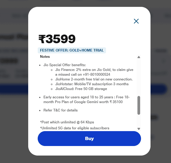 Jio का 3599 रुपये वाला प्लान | Jio Rs 3599 Recharge Plan