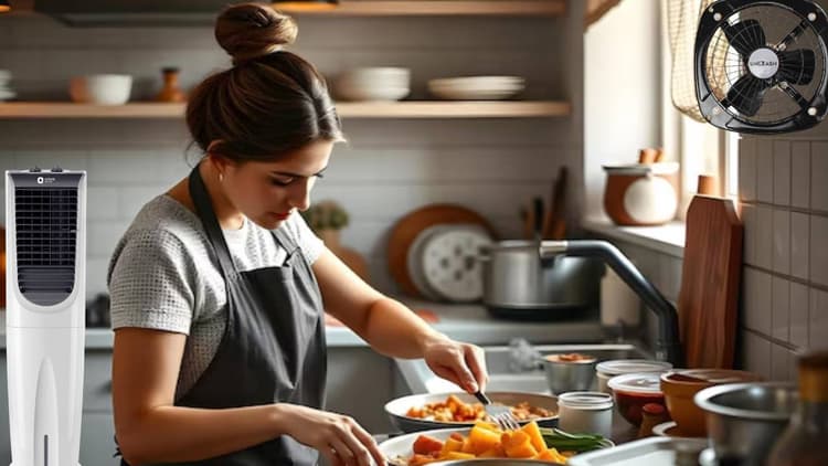 किचन को गर्म टेंपरेचर से बचाने के लिए एग्जॉस्ट फैन काफी मददगार होती है. एग्जॉस्ट फैन किचन के गर्म हवा, धुएं और भाप को बाहर निकालता है. जिससे किचन में उमस नहीं होती. साथ ही एग्जॉस्ट फैन किचन में हवा के सर्कुलेशन को बेहतर बनाता है. ऐसे में किचन की गर्मी से बचने के लिए एग्जॉस्ट फैन कम बिजली में चलने वाला काफी सस्ता ऑप्शन है.