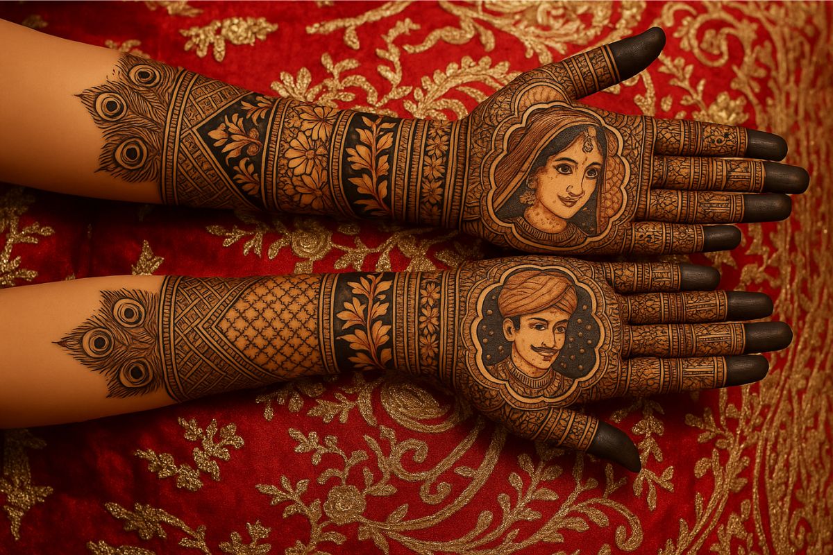 एआई दूल्हा-दुल्हन मेहंदी डिजाइन | AI Simple Dulha-Dulhan Mehndi Design