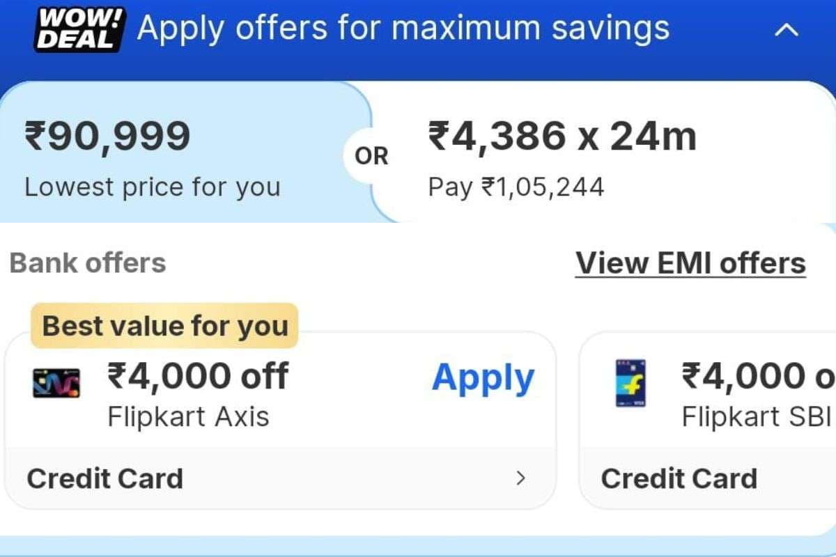 Flipkart Diwali Sale में iPhone 16 Pro पर Flipkart Axis और Flipkart SBI कार्ड पर 4000 रुपये का इंस्टेंट बैंक डिस्काउंट मिल रहा है.