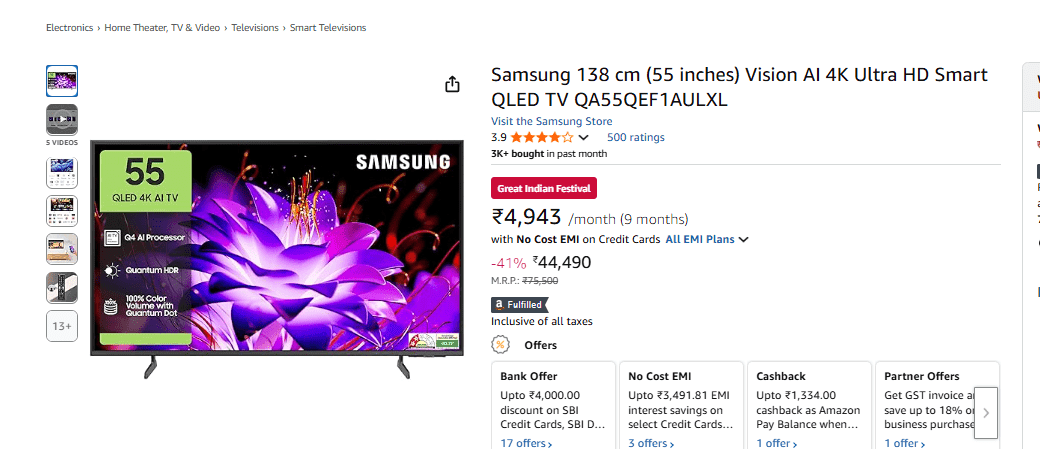 बड़ी स्क्रीन, छोटा दाम, Amazon Great Indian Festival Sale में 55 इंच Smart TV पर मिल रहा बंपर डिस्काउंट