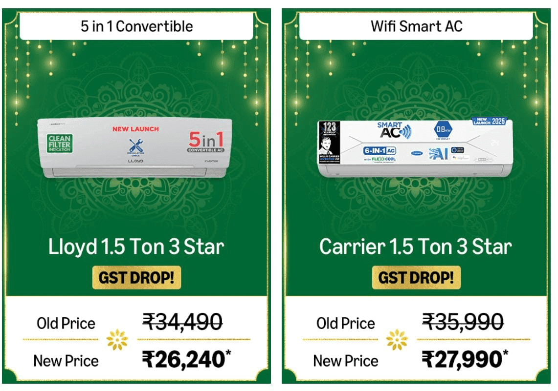 Amazon Great Indian Festival Sale में AC के दाम हुए धड़ाम, 1.5 Ton मॉडल्स पर मिल रहे बंपर डिस्काउंट