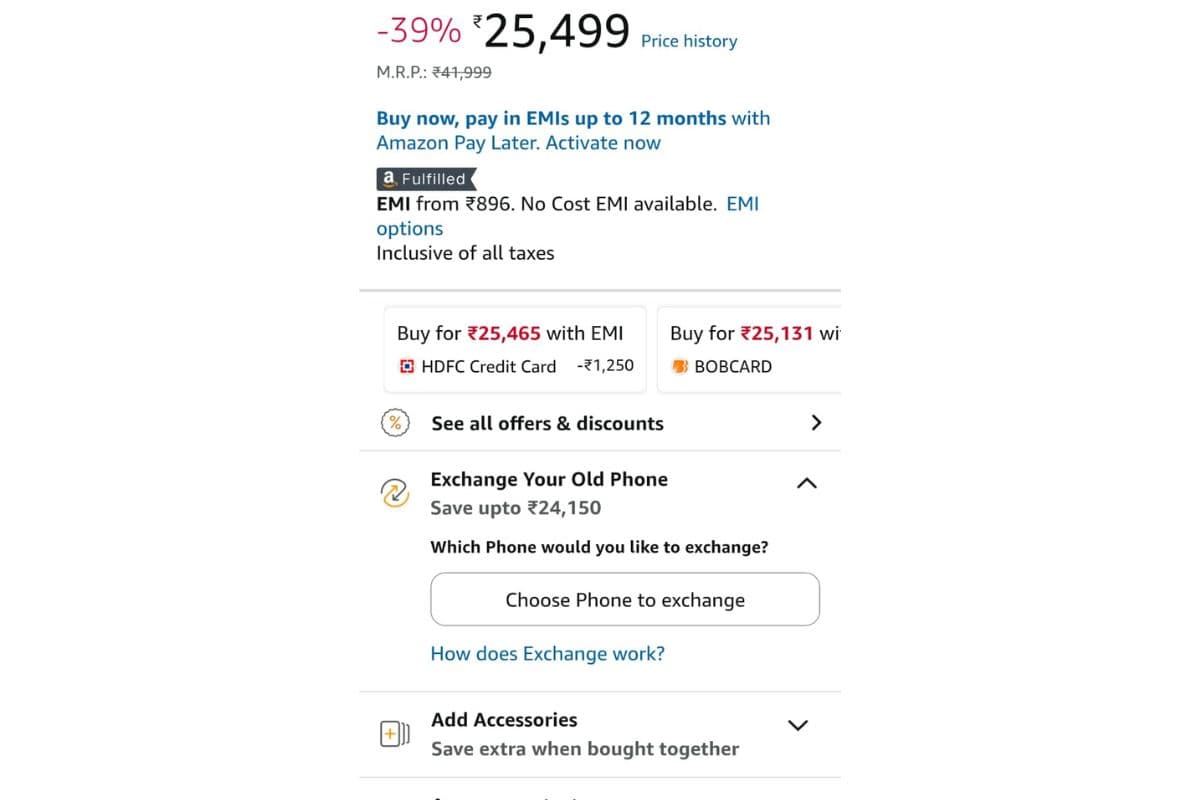 Motorola Edge 50 Pro (12GB RAM + 256GB स्टोरेज) इंडिया 35,999 रुपये में लॉन्च हुआ था. लेकिन अमेजन पर अभी सिर्फ 25,499 में मिल रहा है. यानी सीधे 10,500 रुपये की बचत हो रही है. अगर आप HDFC बैंक क्रेडिट कार्ड EMI पर पेमेंट करते हैं, तो और 1,250 का एक्स्ट्रा डिस्काउंट भी मिल सकता है. और ज्यादा बचत के लिए, आप अपना पुराना फोन एक्सचेंज भी कर सकते हैं.