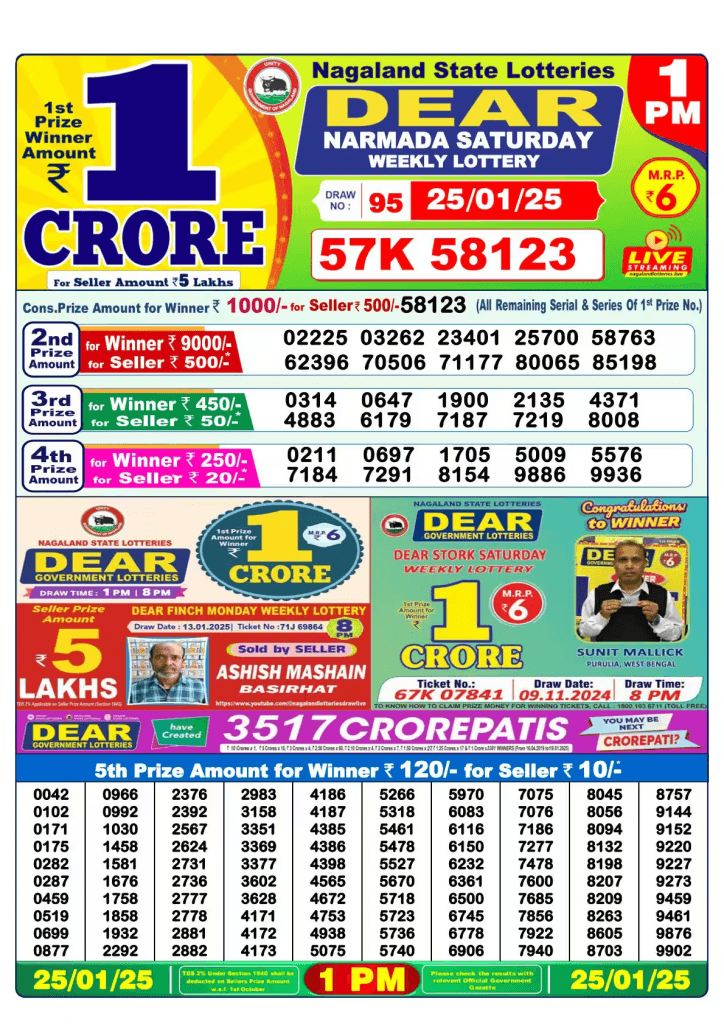 Dear Narmada 1 PM Saturday Lucky Draw Complete Winners List