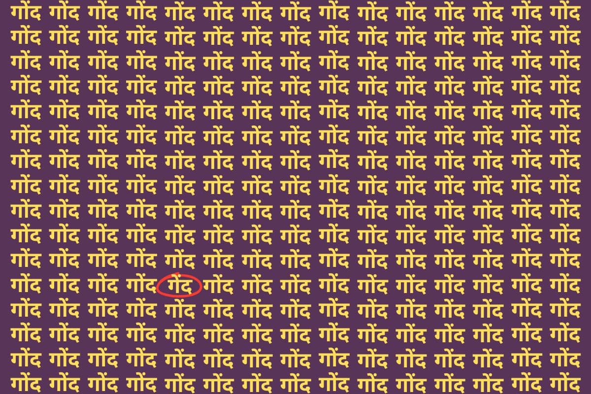 इस फोटो में आपको ऊपर से नीचे तक सिर्फ गोंद लिखा ही दिखाई दे रहा होगा, लेकिन इसमें कहीं न कहीं एक जगह गेंद भी छिपा हुआ है. आपका काम है उस गेंद को ढूंढना. अगर आपको अपनी पारखी नजरों पर पूरा भरोसा है, तो इसे खोजकर दिखाएं. बस एक शर्त है, आपके पास यह चैलेंज पूरा करने के लिए सिर्फ 10 सेकंड होंगे. अगर इतने में जवाब नहीं मिला, तो चिंता मत कीजिए, समाधान भी यहीं मिलेगा.