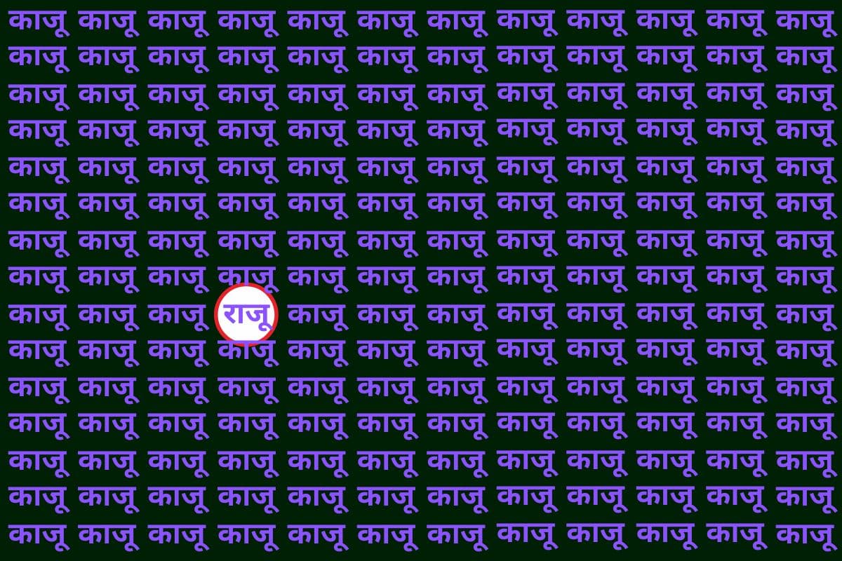 इस ऑप्टिकल इल्यूजन वाली फोटो ने लोगों को उलझा कर रख दिया है, क्योंकि इसमें राजू को ढूंढना काफी चुनौतीपूर्ण है. ऐसी तस्वीरों में सही जवाब तक पहुंचना आसान नहीं होता. शब्द आपकी आंखों के सामने ही रहता है पर लेकिन आप इसे खोज नहीं पाते।