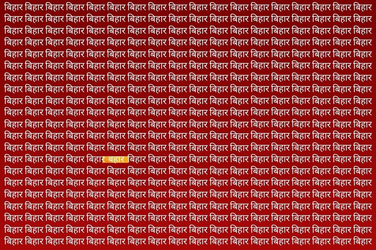 अब आते हैं इस फोटो पर जिसमें आपको हर तरफ बिहार लिखा हुआ नजर आ रहा होगा. बिल्कुल ब्रेन टेस्ट जैसा मामला है. लेकिन इसमें एक मजेदार ट्विस्ट है और वो यह है कि इतने सारे बिहार में कहीं एक ‘बहार’ भी छिपा हुआ है. सुनने में आसान लगता है, लेकिन यकीन मानिए, इस भीड़ में ‘बहार’ को ढूंढना ऐसा काम है कि अच्छे-अच्छों के सिर ददुख जाएंगे. तो चलिए, अब आपकी बारी है इस चैलेंज को ट्राई करना का. देखते हैं आप कितनी जल्दी इसे ढूंढ पाते हैं.