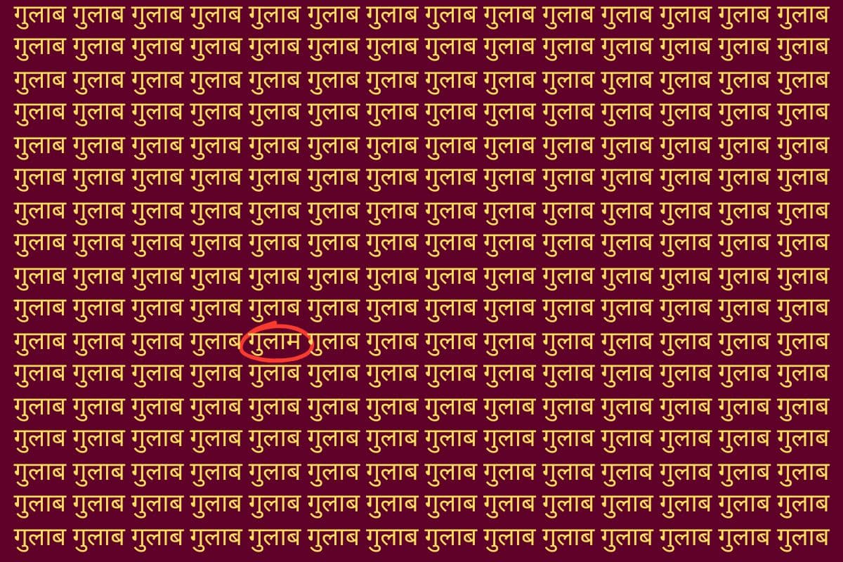 अब आते हैं इस फोटो पर जिसमें आपको हर तरफ गुलाब लिखा हुआ नजर आ रहा होगा. बिल्कुल ब्रेन टेस्ट जैसा मामला है. लेकिन इसमें एक मजेदार ट्विस्ट है और वो यह है कि इतने सारे गुलाब में कहीं एक ‘गुलाम’ भी छिपा हुआ है. सुनने में आसान लगता है, लेकिन यकीन मानिए, इस भीड़ में ‘गुलाम’ को ढूंढना ऐसा काम है कि अच्छे-अच्छों के सिर दुख जाएंगे. तो चलिए, अब आपकी बारी है इस चैलेंज को ट्राई करना का. देखते हैं आप कितनी जल्दी इसे ढूंढ पाते हैं.