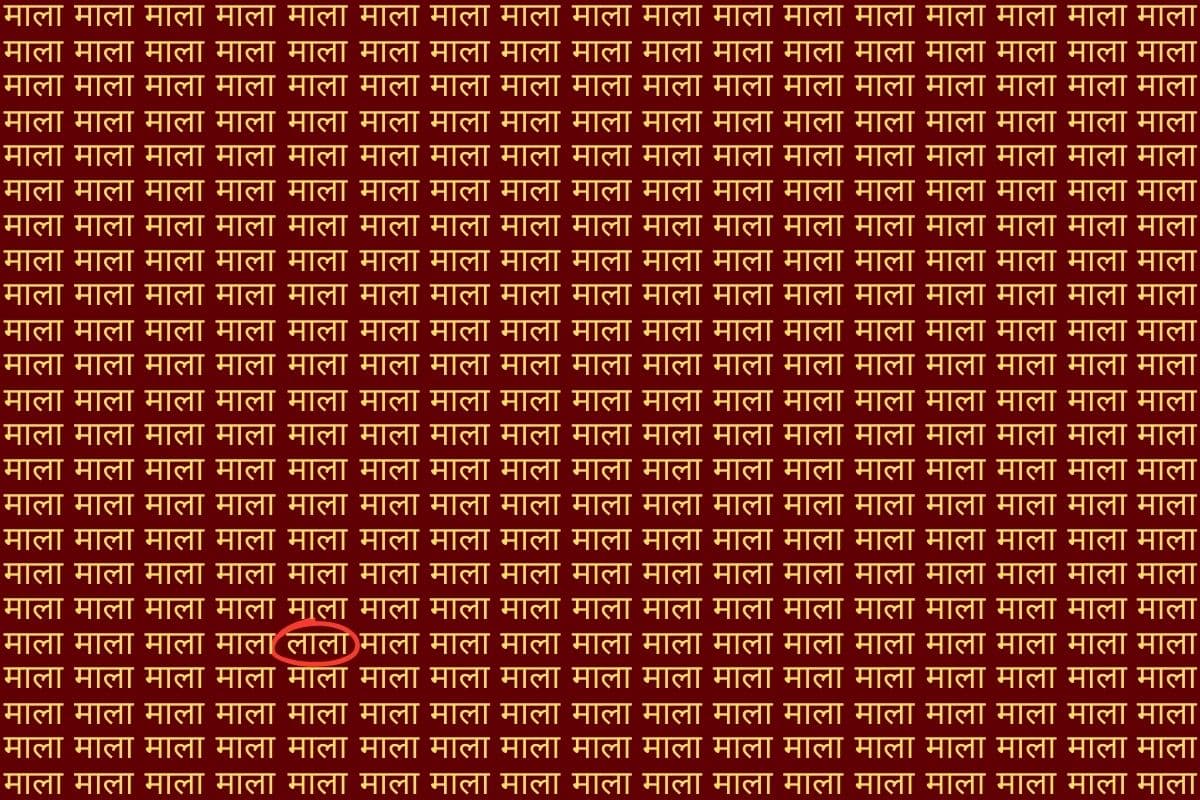 आज हम आपके लिए ऐसी ही एक फोटो लाए हैं जिसमें आपको हर जगह ‘माला’ लिखा हुआ दिखाई दे रहा होगा लेकिन इन्हीं के बीच कहीं ‘लाला’ लिखा हुआ है. अब चैलेंज यह है कि इसमें छिपा लाला को आपको सिर्फ 10 सेकेंड में ढूंढना है.