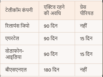बीएसएनएल थोड़ा दयालु है, लेकिन बाकी कंपनियों में सिम जल्दी बंद हो सकती है।