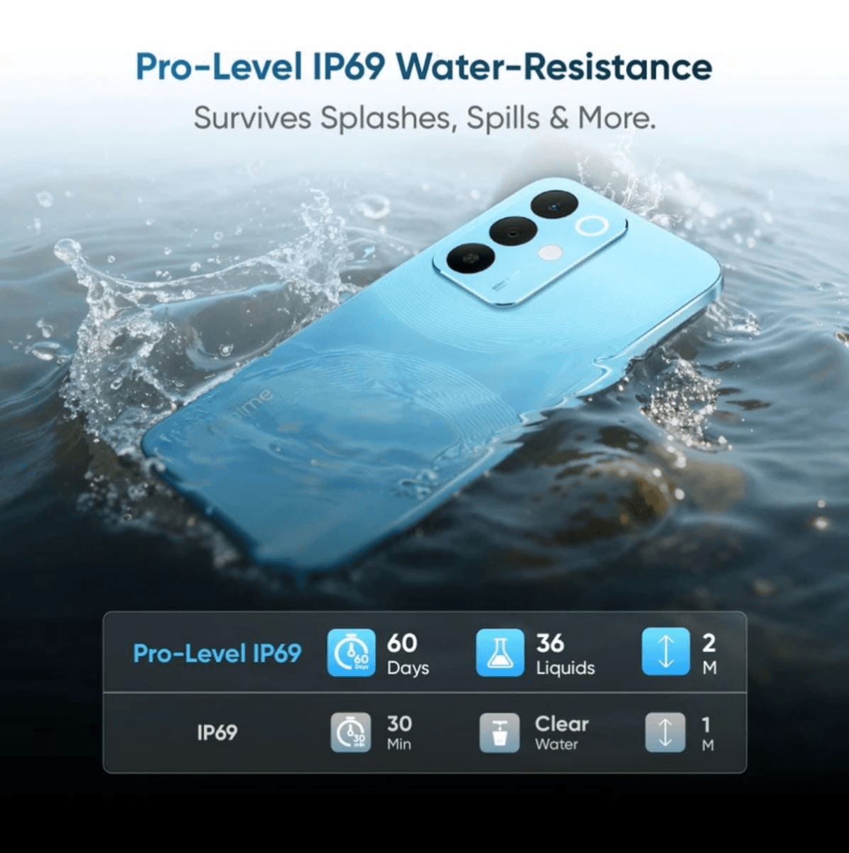 डिस्प्ले: Realme 15x 5G में 144Hz रिफ्रेश रेट, 1200nits पीक ब्राइटनेस और 180Hz टच सैंपलिंग रेट सपोर्ट के साथ 6.8-इंच की बड़ी HD+ LCD स्क्रीन दी गई है. डिस्प्ले प्रोटेक्शन के लिए मॉडल IP68+IP69 और MIL-STD 810H से लैस है.