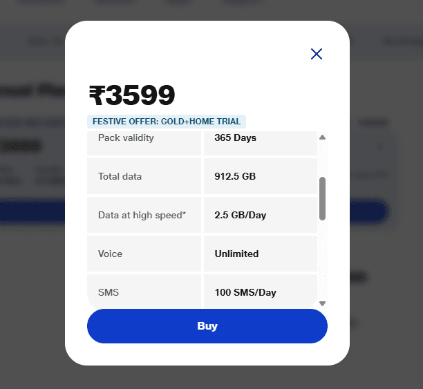 Jio 3599 रुपये में 365 दिन की वैलिडिटी, डेली 2.5GB डेटा, अनलिमिटेड कॉलिंग, 100 SMS/दिन और कई एक्स्ट्रा बेनिफिट्स जैसे JioHotstar, JioTV, JioAICloud और JioGold बोनस शामिल हैं.