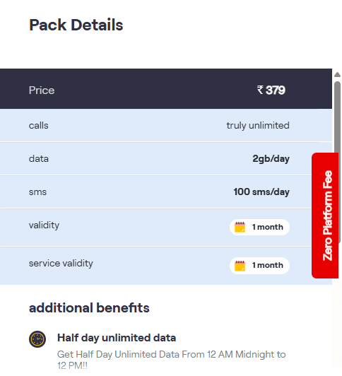 वहीं, 379 रुपये वाले रिचार्ज प्लान में कंपनी यूजर्स को 1 महीने की वैलिडिटी यानी 30 दिन की वैलिडिटी दे रही है. 30 दिनों तक किसी भी नेटवर्क पर अनलिमिटेड कॉलिंग, रोजाना 100 फ्री SMS और डेली 2GB डेटा का फायदा यूजर्स को मिलेगा. वहीं, अगर आप 5G यूजर हैं तो आपको अनलिमिटेड डेटा का फायदा मिलेगा. एक्स्ट्रा बेनिफिट्स कि बात करें तो इसमें रात 12 बजे से सुबह 6 बजे तक अनलिमिटेड नाइट डेटा, वीकेंड डेटा रोलओवर और हर महीने 2GB बैकअप डेटा का फायदा मिलेगा.