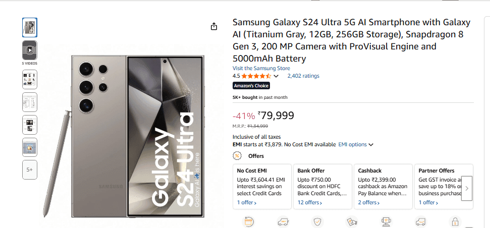 80 हजार से कम में मिल रहा Samsung Galaxy S24 Ultra 5G