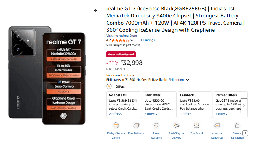 Realme GT 7 पर मिल रहा 28% तक का डिस्काउंट