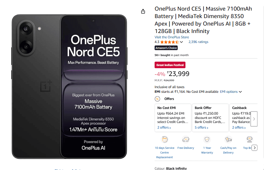 25 हजार से कम में मिल रहा OnePlus Nord CE5