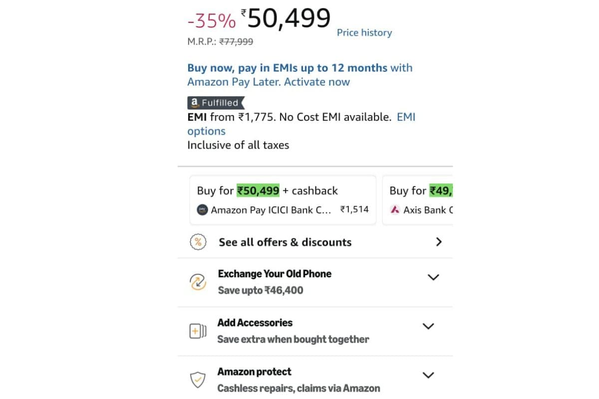आप इसे आसान EMI ऑप्शन के साथ सिर्फ ₹1,775 से खरीद सकते हैं. साथ ही, अपने पुराने फोन को ट्रेड-इन करके आप ₹46,400 तक का एक्सचेंज वैल्यू पा सकते हैं और आसानी से नया डिवाइस ले सकते हैं.