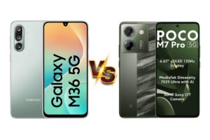 Samsung M36 vs Poco M7 Pro: सैमसंग गैलेक्सी M36 5G और पोको M7 प्रो 5G के बीच स्पेक्स, परफॉर्मेंस, कैमरा की तुलना. 2025 में बजट फोन की टक्कर, कौन बेहतर?